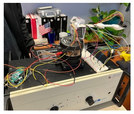 We tested this idea on a shaker bed tuned to typical tremor frequencies and measured the system response. We saw in our tests that the piezoelectric discs and resistors reduced the magnitudes of tremors. The addition of inductors helped to further dampen the tremors. This gave us confidence to move forward with the design.