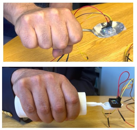 After we finalized the design, the last step was to validate everything by testing with an end-user. We reached out to our project sponsor, who has tremors, to test the device. We measured the acceleration of the tip of the spoon for a regular metal spoon and our device. We found that the device helped to attenuate tremors!